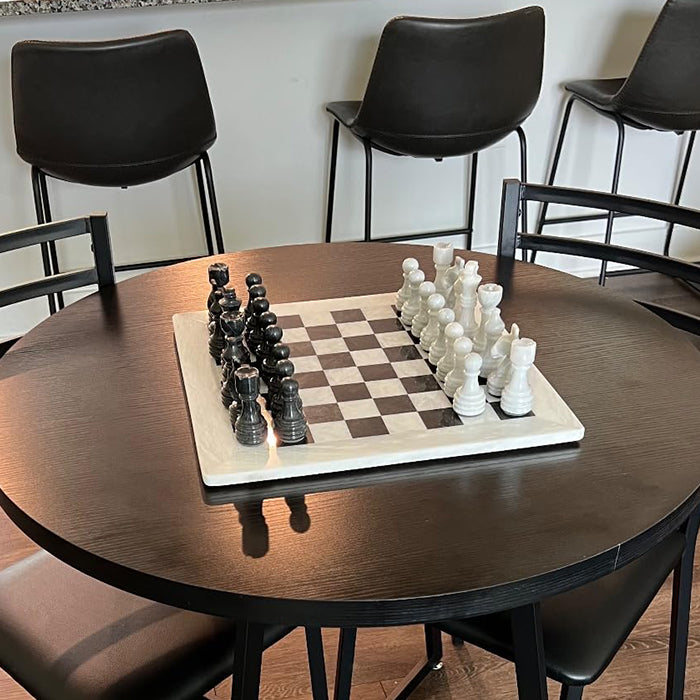 15 Inch White and Black Premium Marble Chess Set with Storage Box