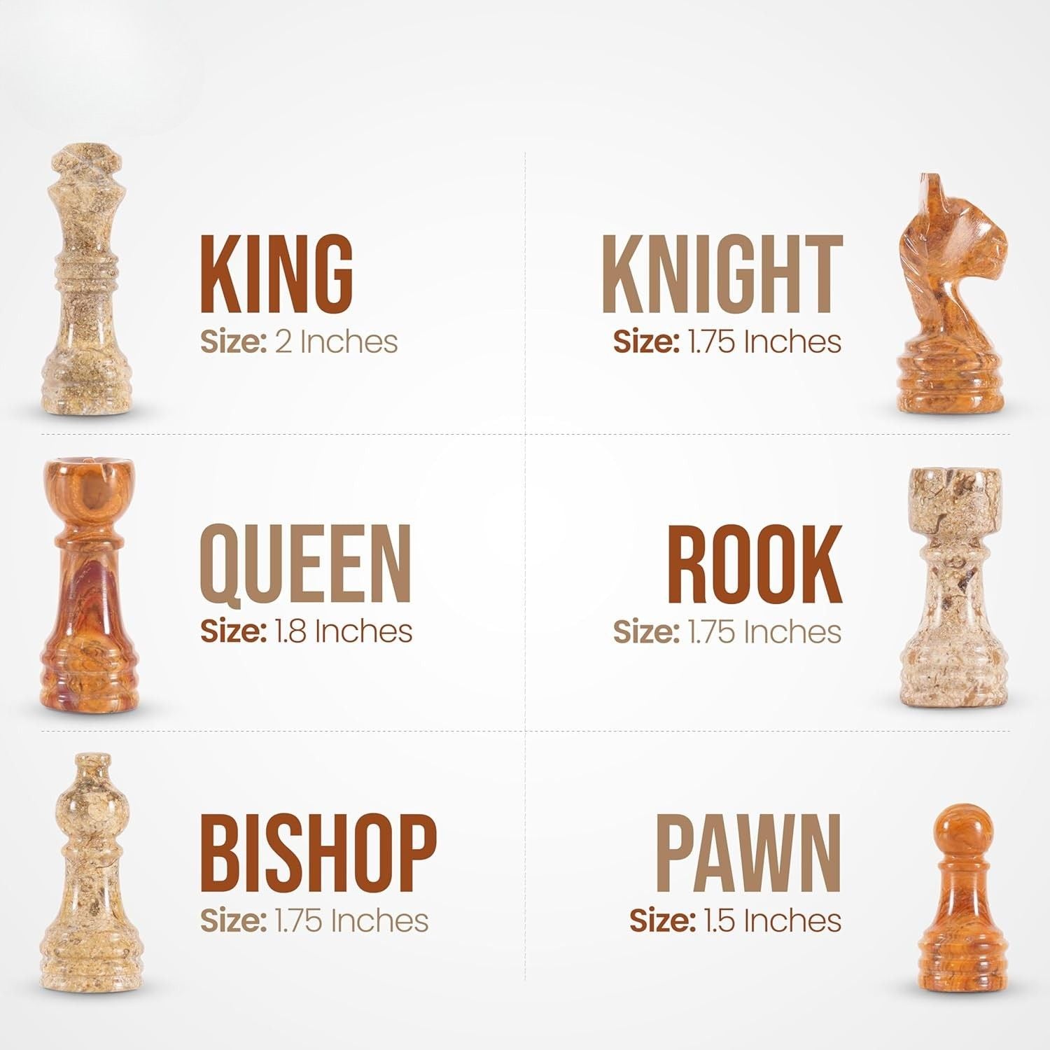 - 32 luxury-crafted Coral & Red marble chess pieces