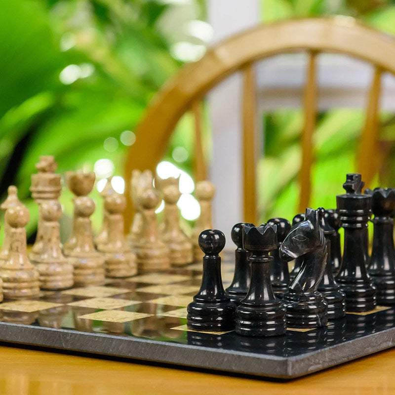 Upgrade your chess game with our 12 Inches Black and Coral Premium Quality Marble Chess Set. Made from high-quality marble chess board, this set adds a touch of elegance to your matches while providing a durable and smooth playing surface. Perfect for both beginners and experienced players to improve their skills.