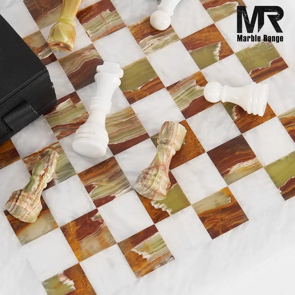 Marble Chess Set for Adults 15" Handmade White & Green Onyx Board Game with 32 Chess Pieces, 2 Extra Queens & Storage Box, Luxury Travel Game, Elegant Gift for Home Decor